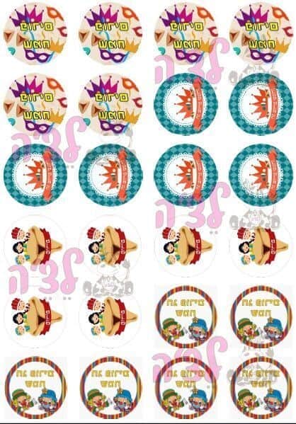 דף סוכר/טרנספר 24 עיגולים למאפינס/סוכריות- פורים דגם 1