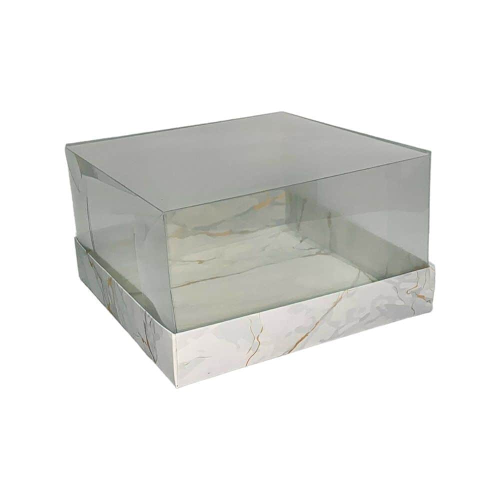 קופסא מכסה שקוף גודל 24 גובה 13 דגם שיש לבן- 10 יח