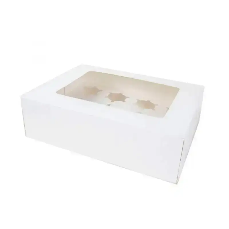 קופסת קרטון עם חלון חלקי ל12 קאפקייקס- לבן- מארז 10 יח