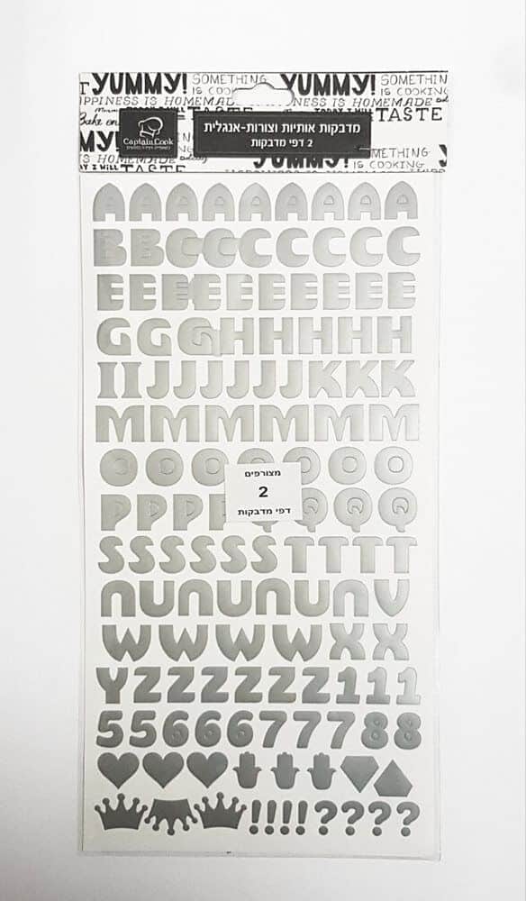 מדבקות לבלונים וקופסאות אותיות באנגלית - כסף- 2 דפים