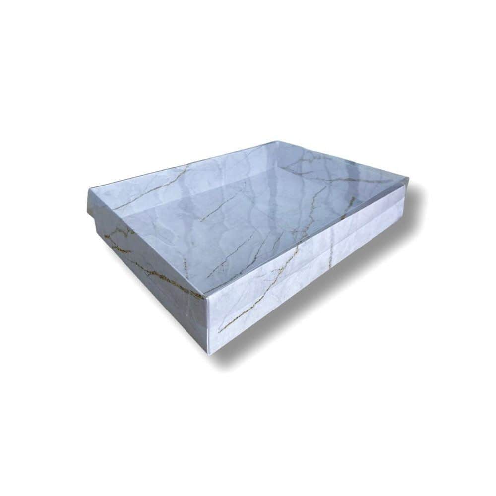קופסא מכסה שקוף תחתית שיש לבן גודל 30/43