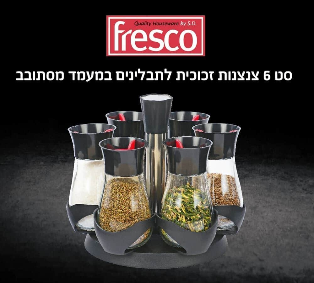 סט 6 צנצנות תבלינים במעמד מסתובב