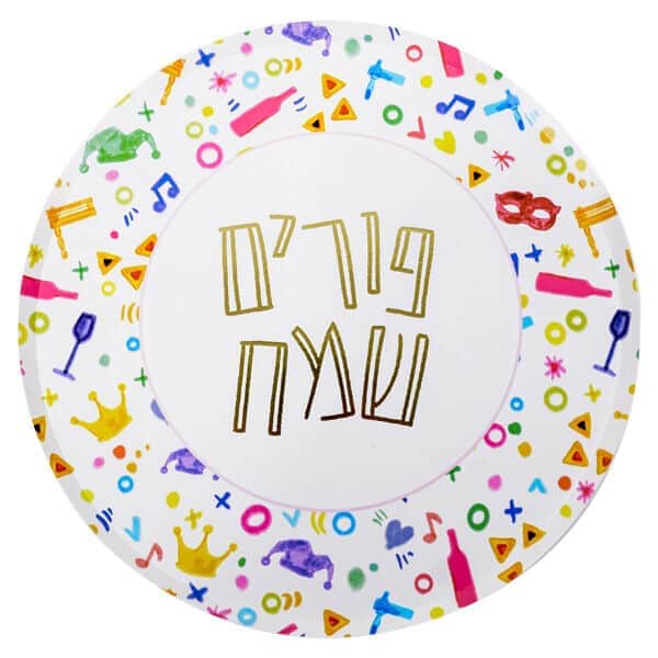 8 צלחות נייר שטוחות דגם פורים שמח גודל 23 ס"מ- דגם 1