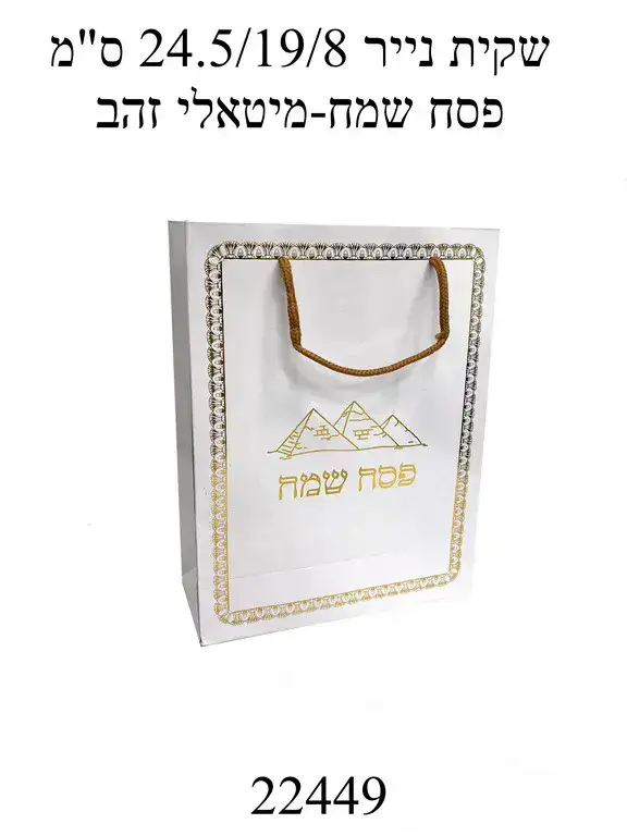שקית נייר פסח שמח מטאלי זהב גודל 24.5/19/8