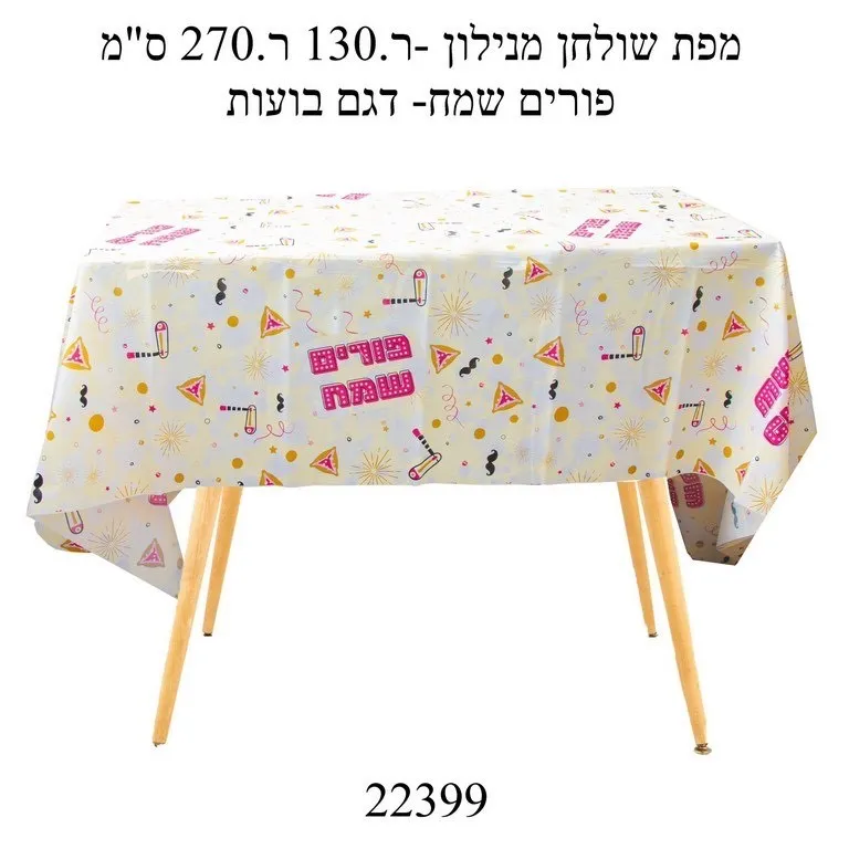 מפת שולחן ניילון- פורים שמח דגם בועות