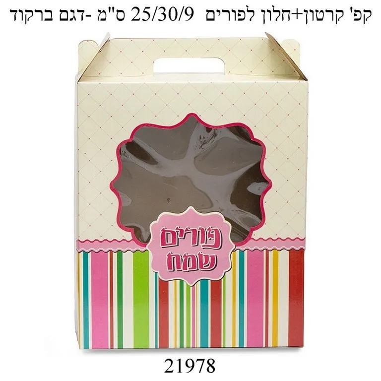 קופסאת קרטון וחלון דגם ברקוד - 25/30/9 ס"מ