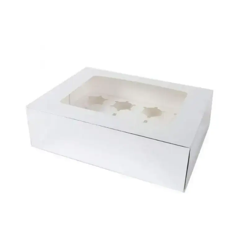 קופסת קרטון עם חלון חלקי ל12 קאפקייקס- כסף
