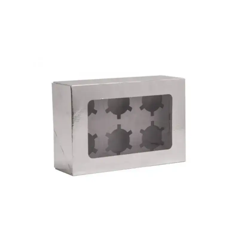 קופסת קרטון עם חלון חלקי ל6 קאפקייקס כסף