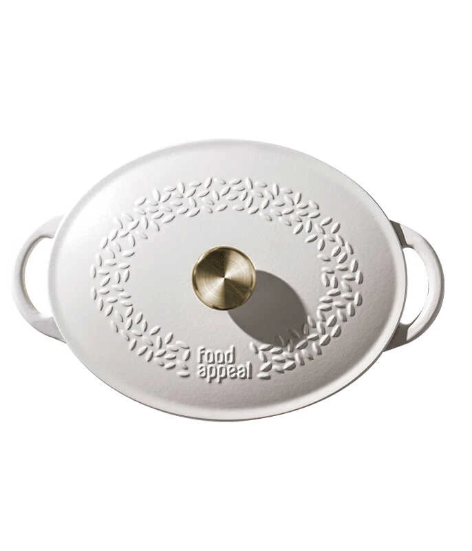 סיר אובלי יציקת ברזל בגודל 33.5/12- 6.6 ליטר לבן פוד אפיל