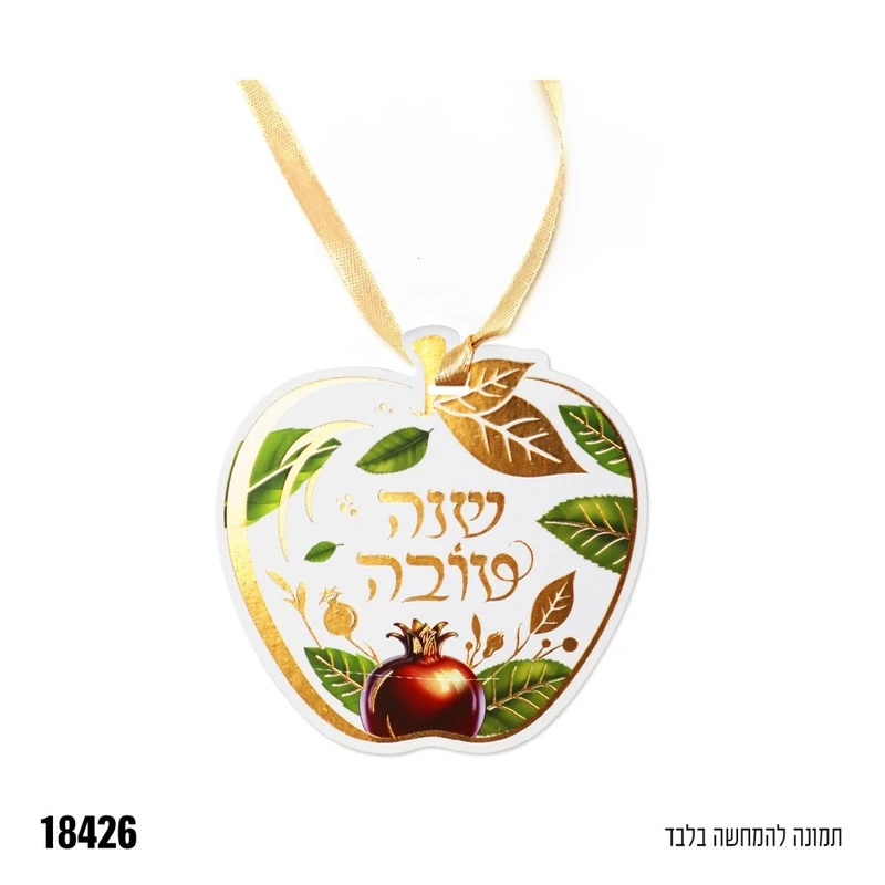 כרטיס ברכה שנה טובה -בצורת תפוח עם סרט זהב לקשירה - 10 יח