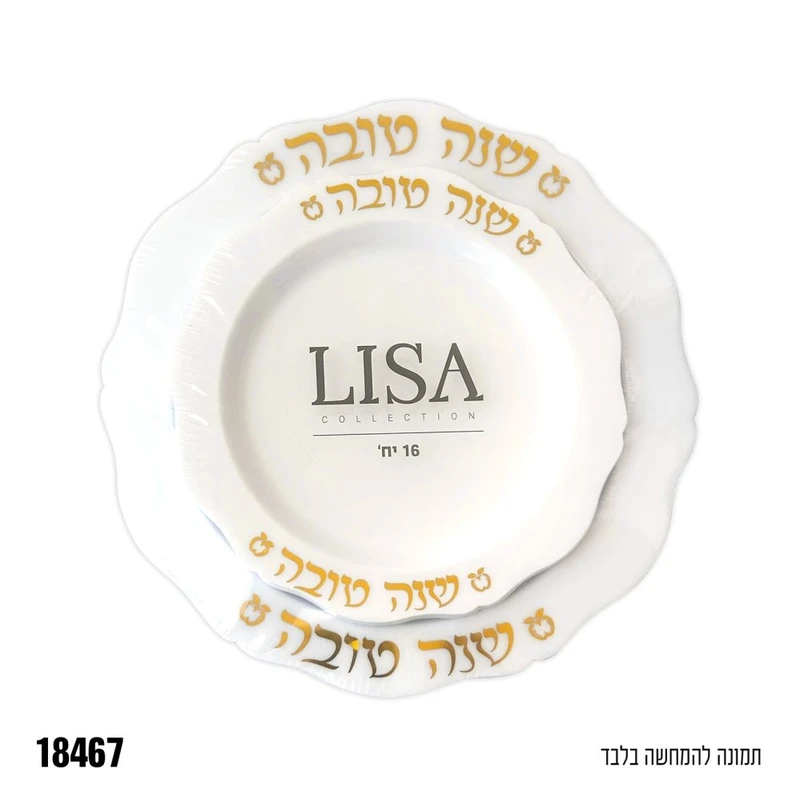 מארז צלחות פלסטיק מוטבע בזהב שנה טובה- קטן וגדול
