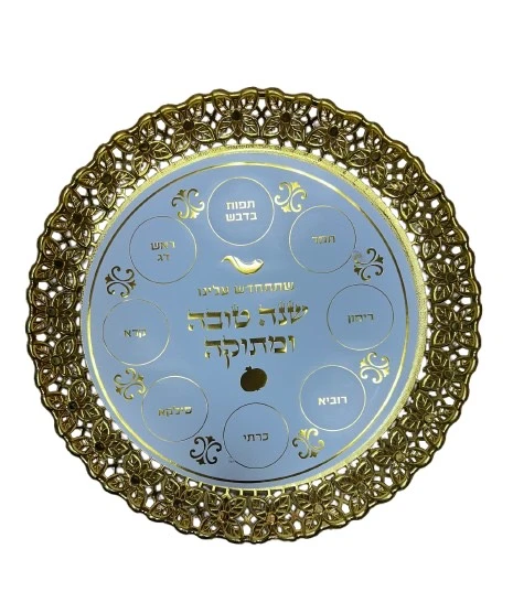 צלחת ברכות ראש השנה פלסטיק זהב