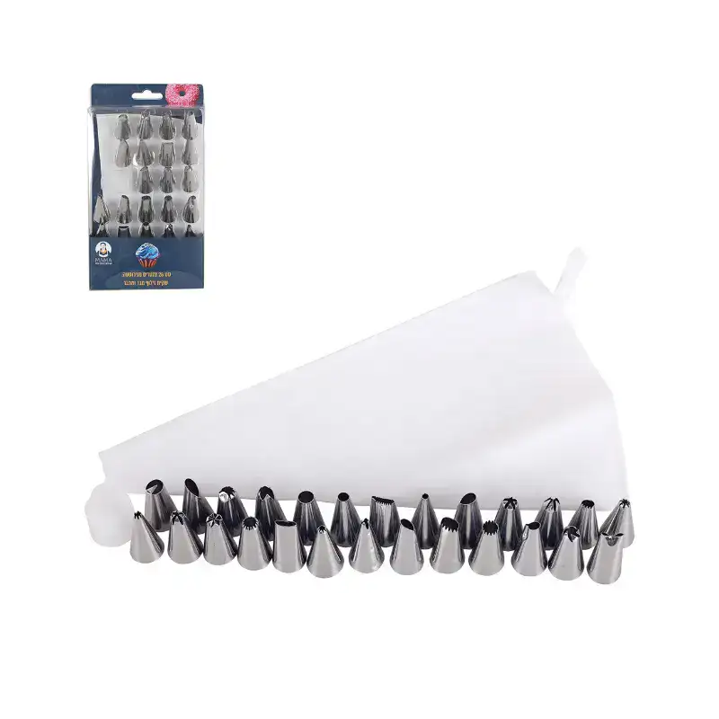סט 26 צנטרים מנירוסטה, שקית זילוף מבד ומחבר