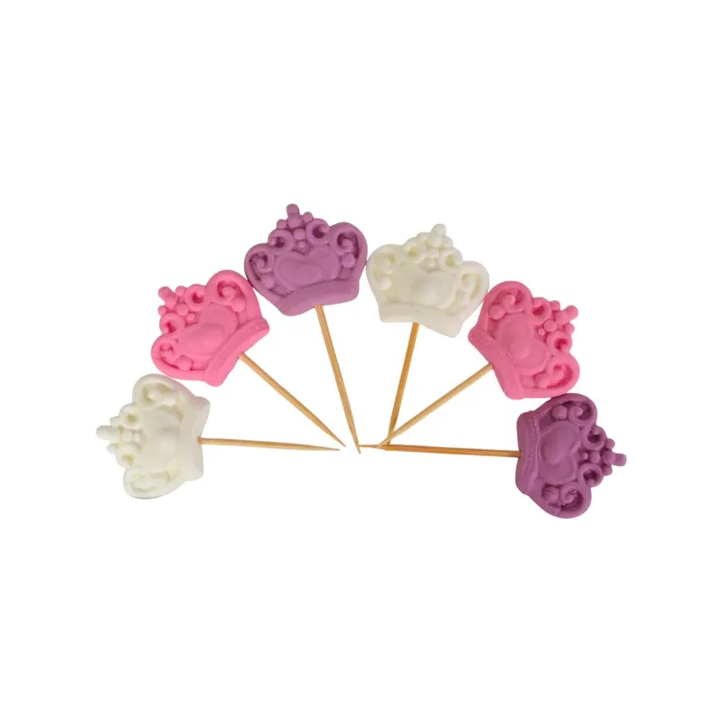 קישוט בצק סוכר-כתר על קיסם- ורוד לבן סגול ,5 יח'