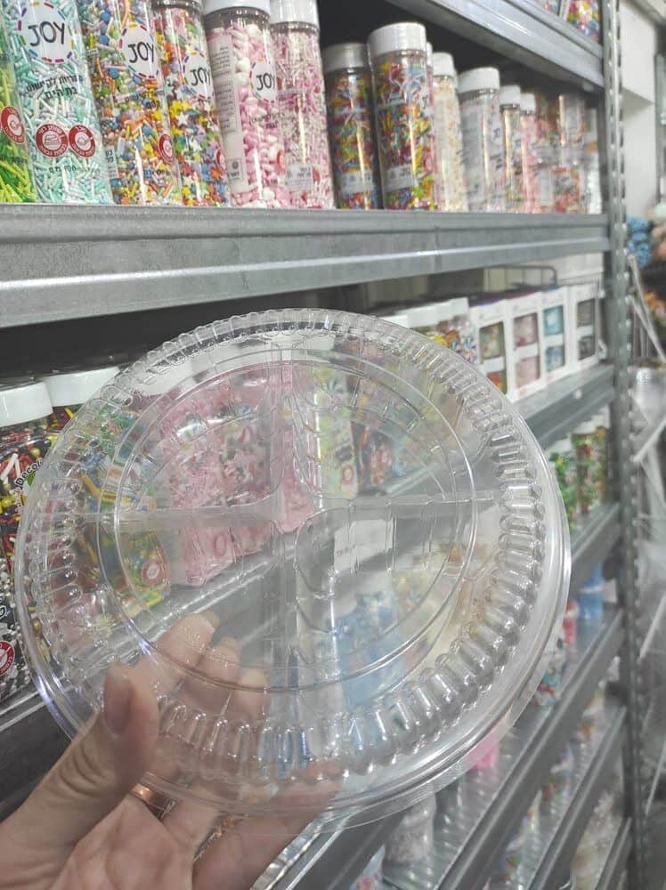 קופסאת חלוקה שקופה 4 תאים עם מכסה קוטר 18 סמ