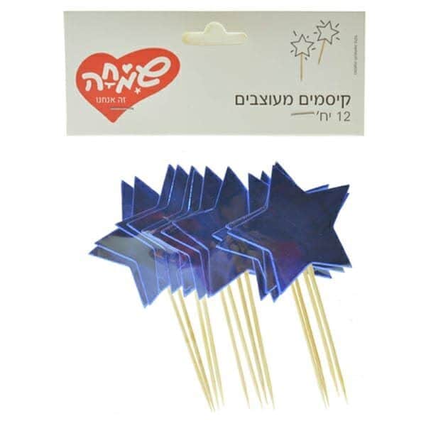 12 דגלונים לקאפקייקס בצורת כוכב צבע כחול