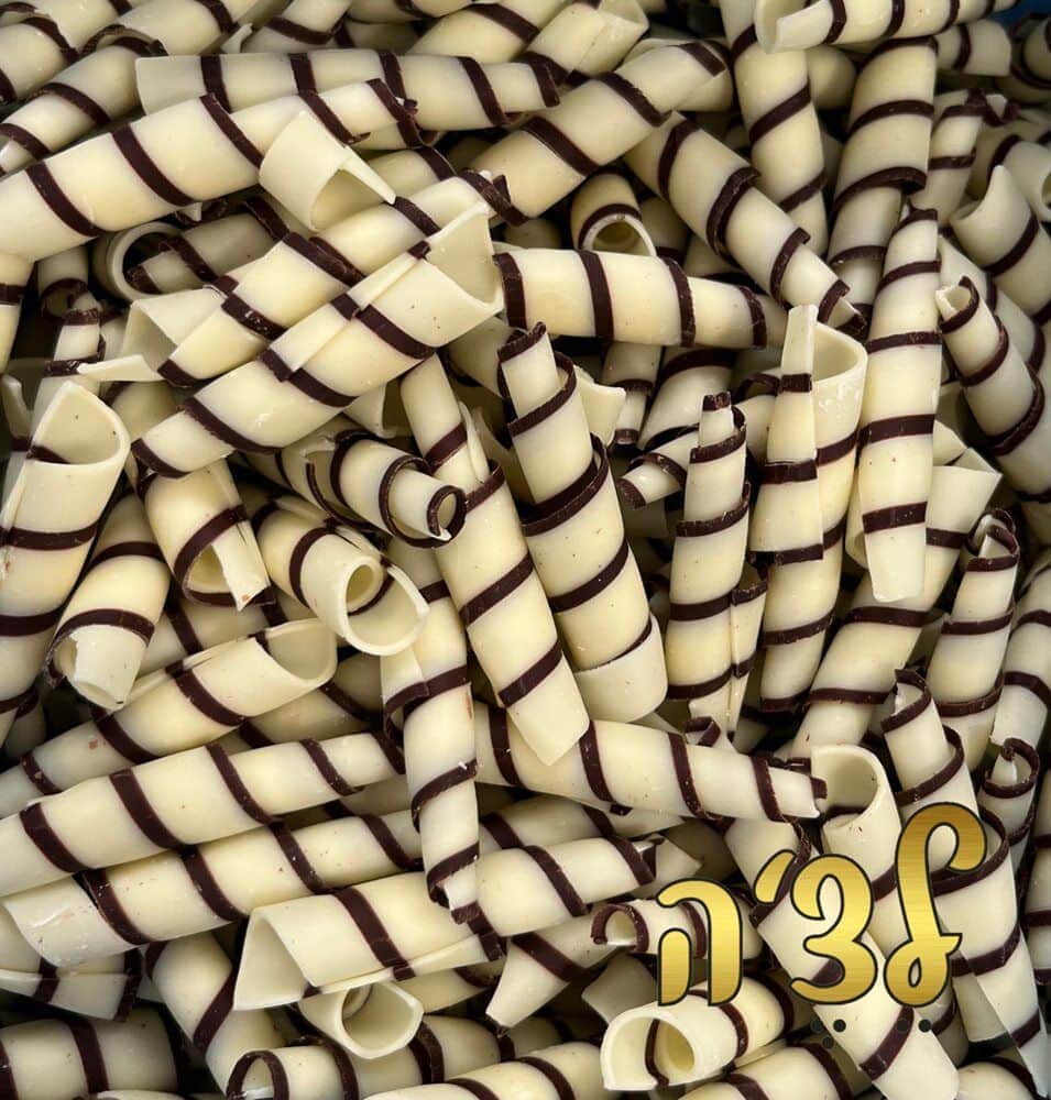 קישוטי שוקולד- תלתלים טוויסטר לבן- מחיר ל100 גרם, חלבי