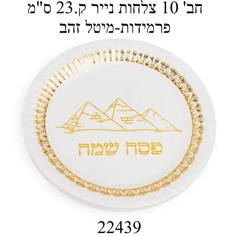 חבילת 10 צלחות הדפס זהב פסח שמח