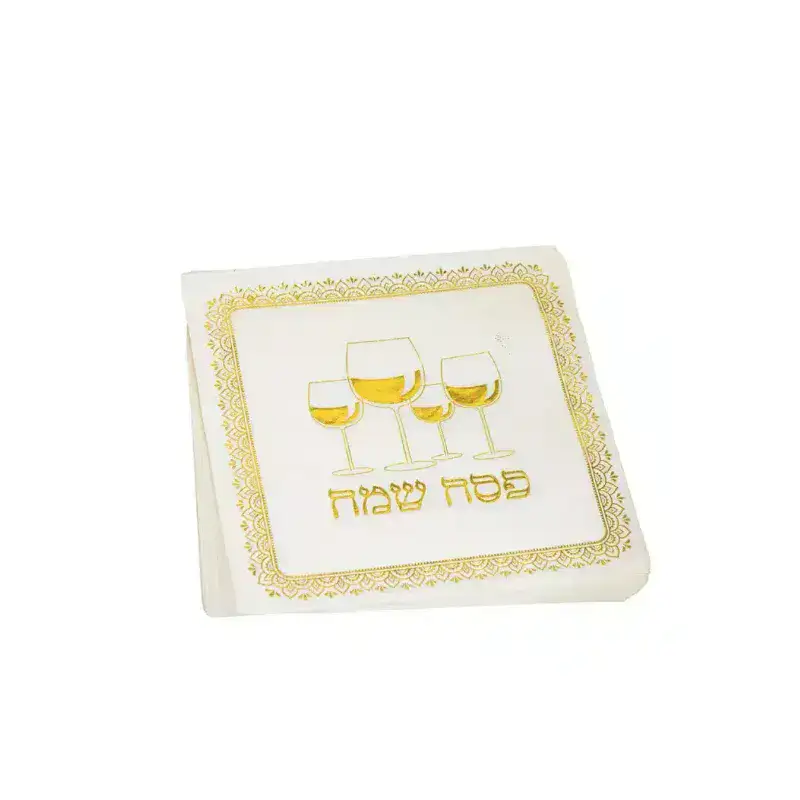 חבילת 16 מפיות נייר פסח שמח ארבע כוסות זהב