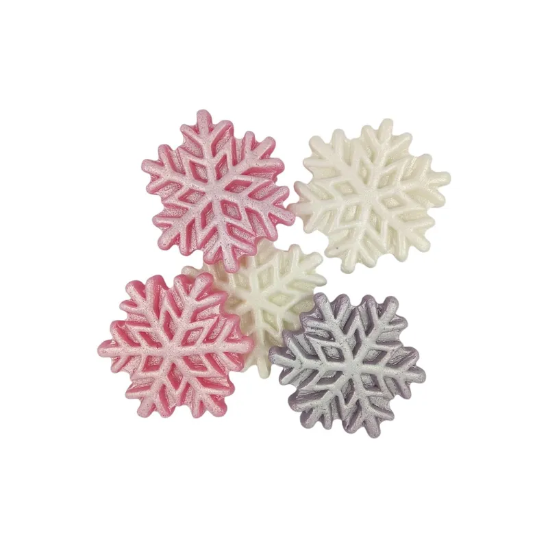 קישוט בצק סוכר- פתיתי שלג לבן ורוד סגול
