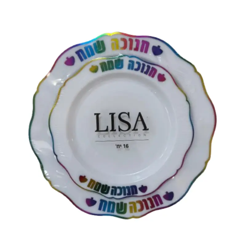 סט 16 צלחות חנוכה שמח- 2 גדלים